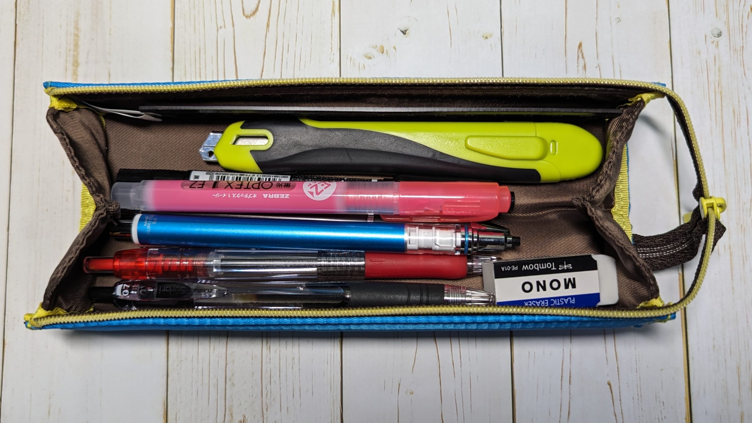 ただ、今回届いた筆箱は個体差かSサイズのせいかわかりませんが、チャックの開きがやや渋かったので評価を普通にしました。