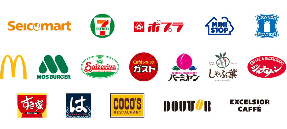 対象店のリストを見ていただきたいのですが、皆さんがよく利用するコンビニや飲食店が含まれているのではないでしょうか?私はよくセブンイレブンやローソンを利用しています。