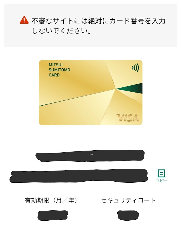 三井住友カードNLはセキュリティ向上のため、クレジットカードにカード番号や有効期限、セキュリティーコードが記載されていません。