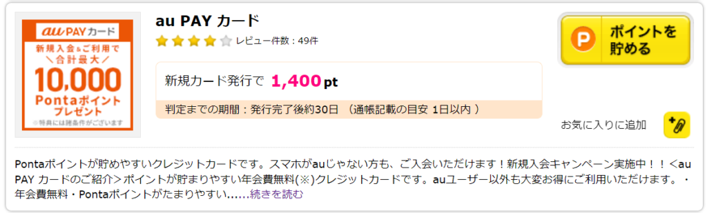 auPAYカードを作るときにはポイントサイトを経由しましょう。自分はハピタスを経由して、auPAYカードを作成しました。auPAYカードを作成して要件を満たすだけでポイント(現金化可能)が貰えるので、絶対に登録したほうが良いです。